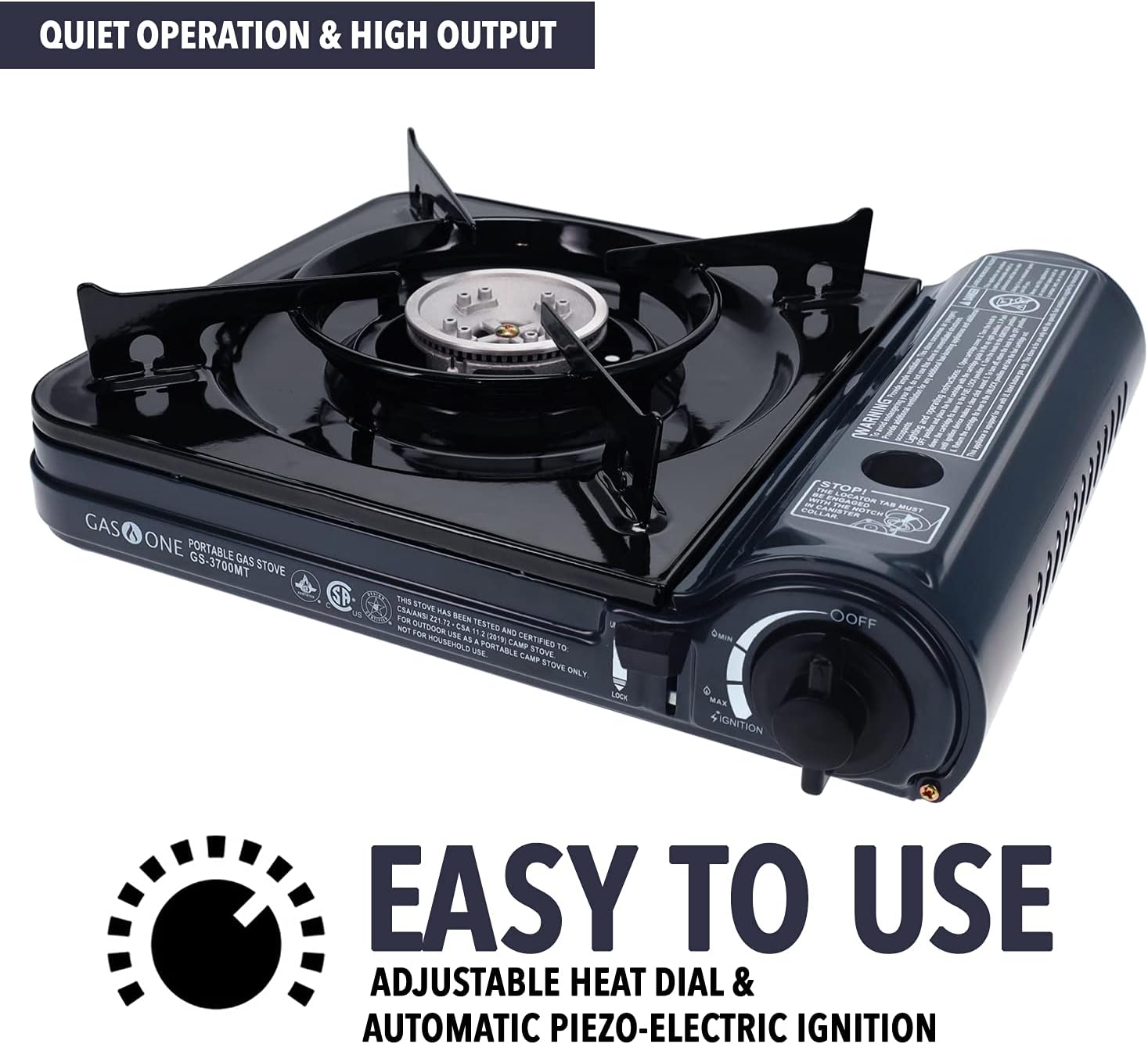 GAS ONE NEW 10,000 BTU CSA List Portable Butane Gas Stove with Carrying Case CSA Listed- Midnight